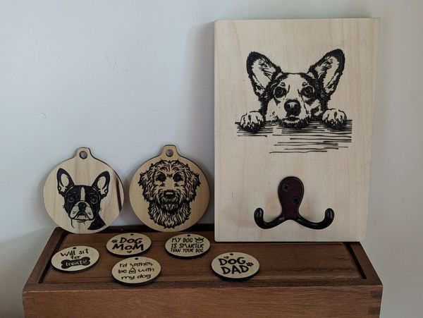 Dee Laser Dogs specializes in creating unique and charming dog-themed craft items using a laser machine. Our collection includes wall decor, leash holders, ornaments, key chains, and more - all designed to celebrate the joy and companionship of our canine friends.